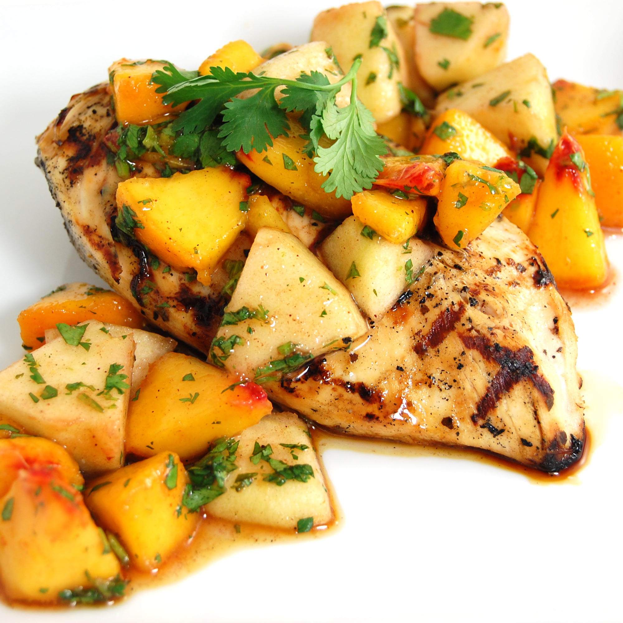 9 Klaar | Serveer de rollade met de perzikensaus |