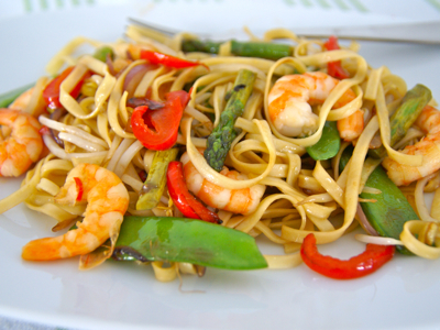 Thaise noedels met garnalen