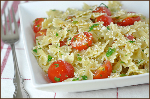 8 Klaar | Schep de peer, lente-ui en amandelen door de pasta |
