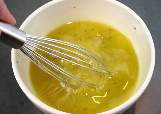 1 Klaar | Maak een dressing van de citroenmayonaise, olijfolie, citroensap, zout en peper |